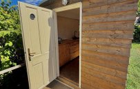 Chatka je ideální pro dvě osoby, je v ni zavedena elektřina, disponuje lednicí a posezením. K dispozici je pár kroků vzdálené, udržované sociální zařízení a zastřešená venkovní kuchyňka s posezením a ohništěm.