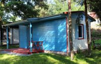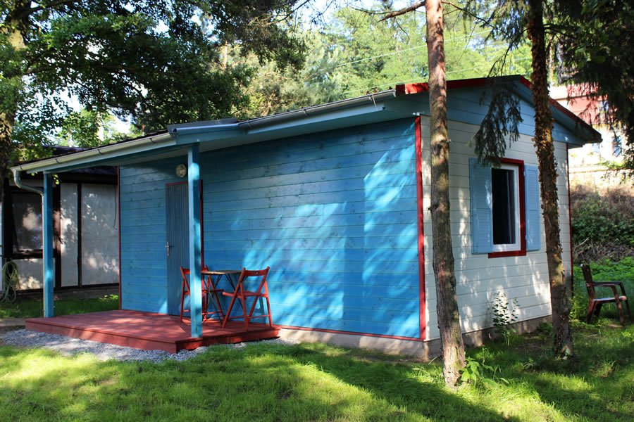 Chatka se nachází na příjemném kraji kempu, má nedaleký přístup k brodu s výhledem na Dobřichovický zámek. Do centra Dobřichovic cca 7 min. pěšky. Vlakové nádraží cca 10 min. pěšky. Po okolí je nepřeberné množství krásných výletů, doporučí vám správce kempu při příjezdu.