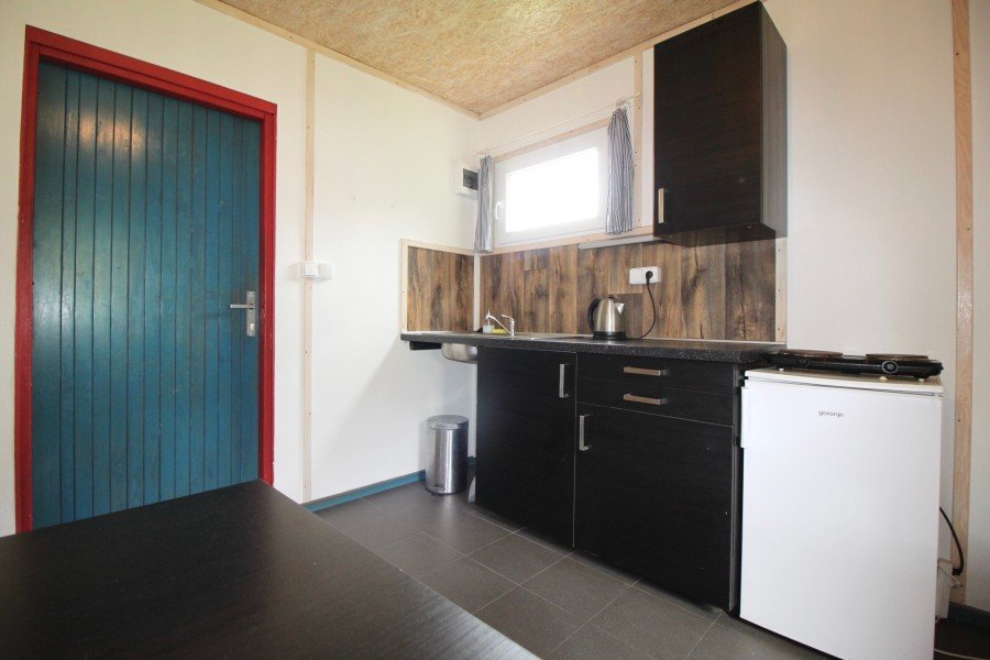 Chatka je ideální pro 1–5 osob, je v ni zavedena elektřina, disponuje kuchyňským koutem, umyvadlem, lednicí, kuchyňským vybavením, skříní a posezením. K dispozici je pár kroků vzdálené, udržované sociální zařízení a zastřešená venkovní kuchyňka s posezením a ohništěm.