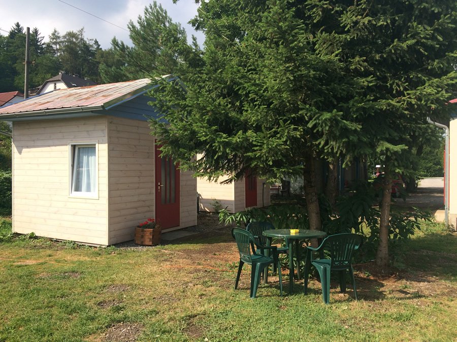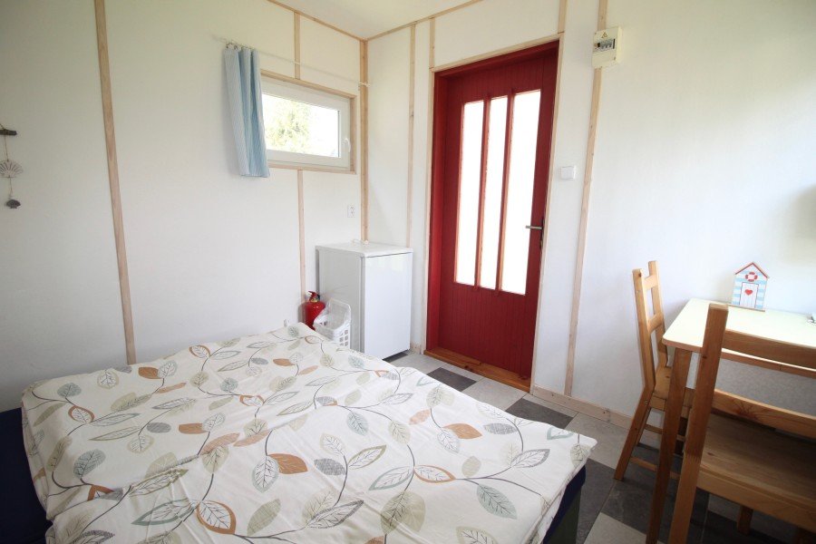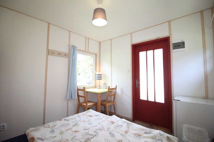 Chatka je ideální pro dvě osoby, je v ni zavedena elektřina, disponuje lednicí a posezením. K dispozici je pár kroků vzdálené, udržované sociální zařízení a zastřešená venkovní kuchyňka s posezením a ohništěm.