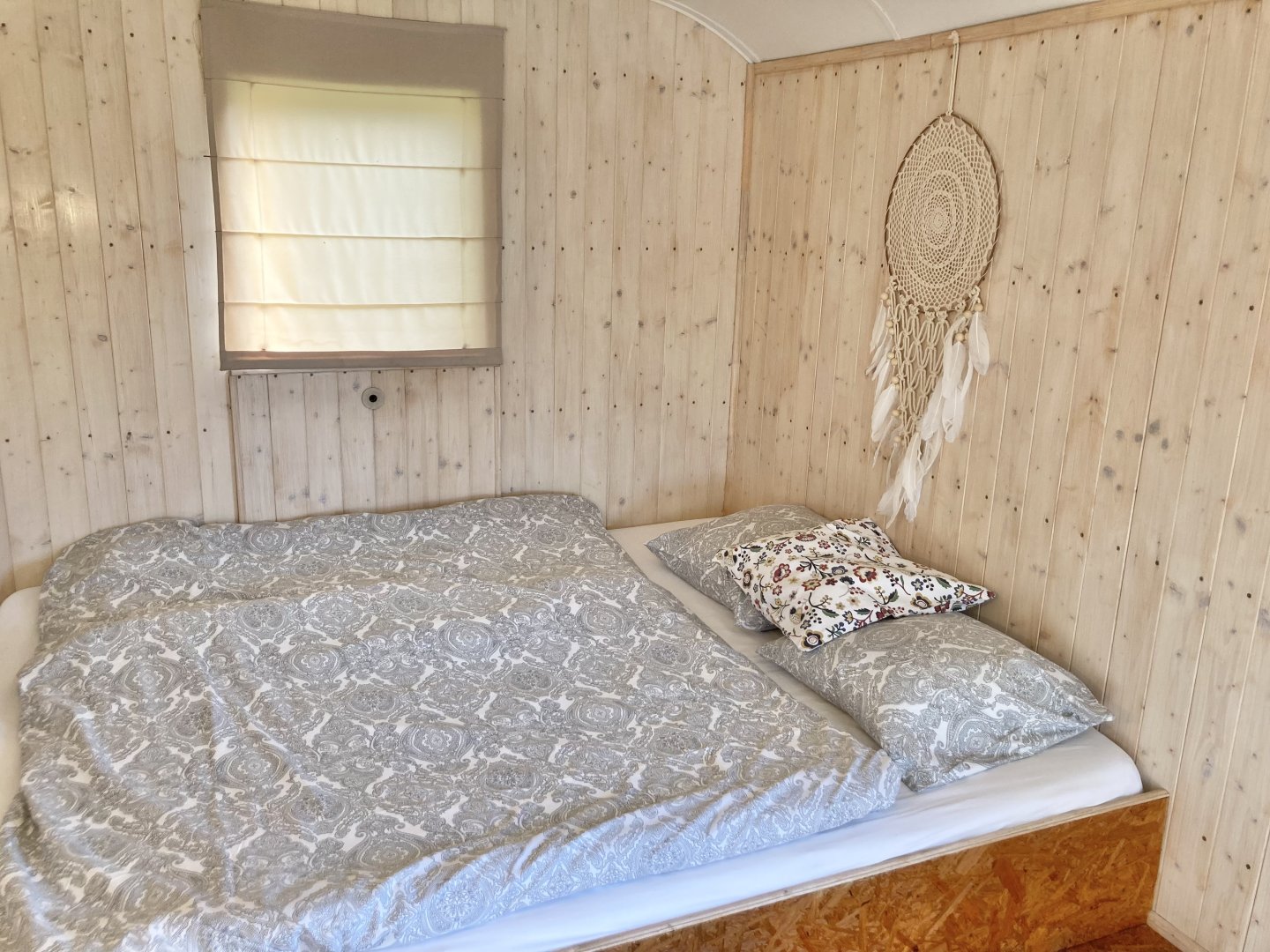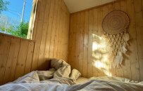 Naše maringotka prošla nedávnou celkovou rekonstrukcí, aby poskytovala maximální pohodlí a komfort. Ideální pro pobyt dvou osob, s postelí o rozměrech 180×200 se snadno vejde i malá rodina. Vybavena je lednicí s mrazákem, rychlovarnou konvicí a základním nádobím. Je zde elektřina i voda.